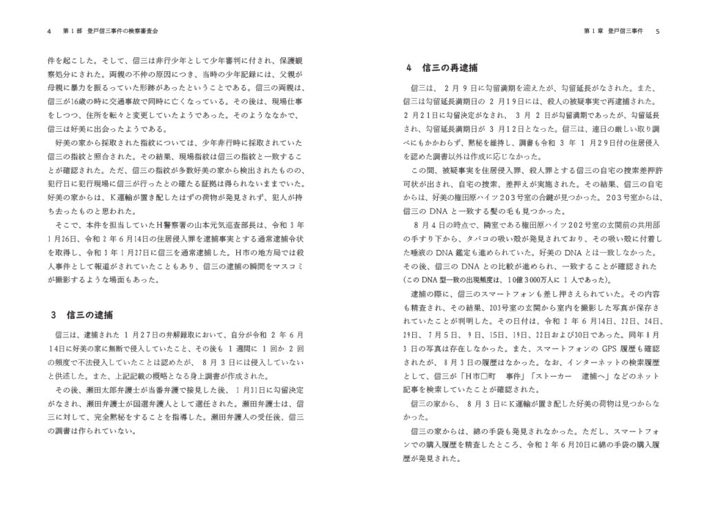 著者らは、一般読者だけでなく刑事事件を扱う法曹関係者にとっても参考になるように、登戸信三事件について仮想の証拠資料を作成した(もちろん、現実にはより多数の資料があるため、選別し簡潔にしたものにはなっている)。著者らとしては第1部を読むなかで、これらの資料を適宜参照してもらうことを期待しているが、読まなくてもおおむねの内容は理解できるように説明してある。