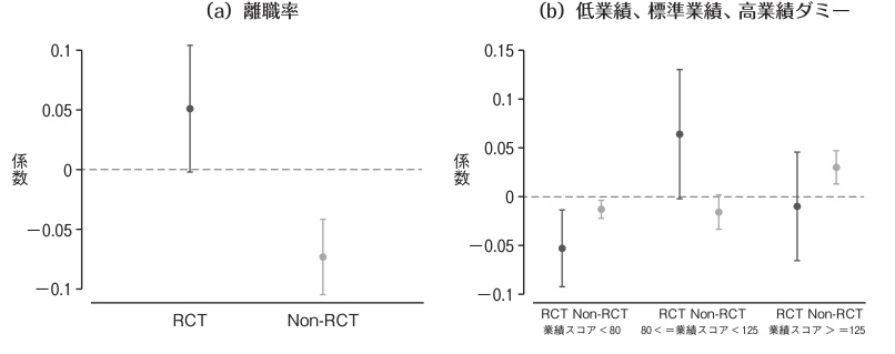 さらに著者らは,他のアウトカムについても分析を行っている.報酬面では,DYP 研修への参加により賞与を受け取る確率や賞与額が有意に増加することが示されている.サーベイデータを用いた分析からは,研修参加者の仕事の意味づけ,職務満足度,主観的幸福度,同僚や企業との一体感といった指標が改善することが示されている.最後に費用便益分析では,研修に伴う機会費用や離職コストを考慮しても,効果が 2 年間持続するならば,企業にとって正の内部収益率をもたらすと試算されている.